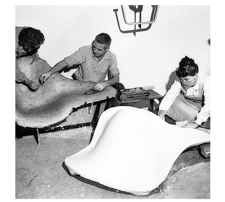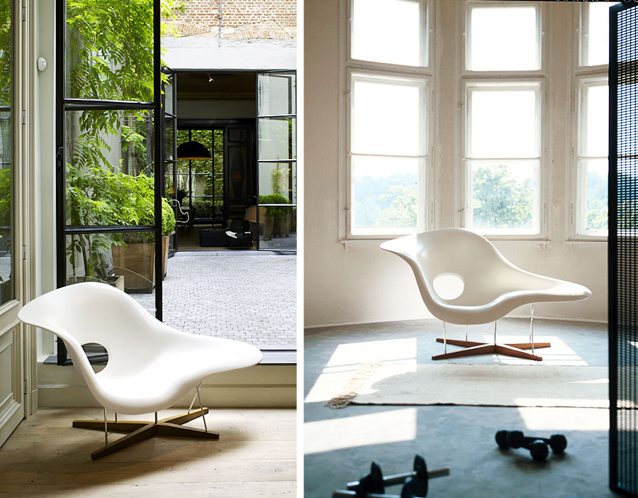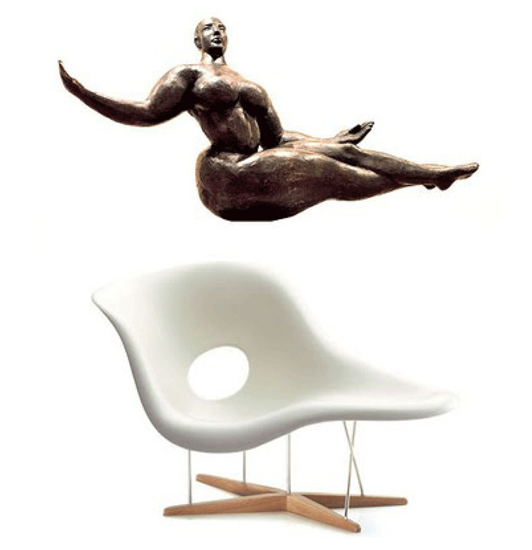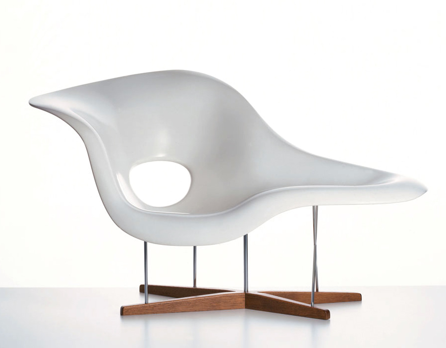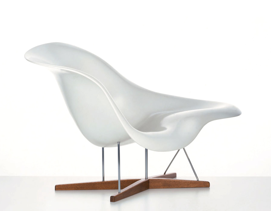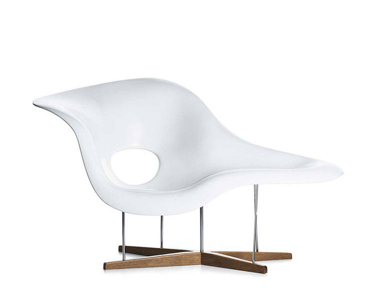 Charles & Ray Eames 以 “流動的線" 為概念設計出了 La Chaise。靈感來自法國雕刻家 Gaston Lachaise 的雕塑品 Floating Figure(漂浮人像),Charles & Ray Eames 為斜臥的仕女找到了一個得以簡單休憩的處所。La Chaise 無可挑剔的優雅,或坐或臥讓使用者可以盡情伸展,創造了一個充滿想像和對話性的空間。