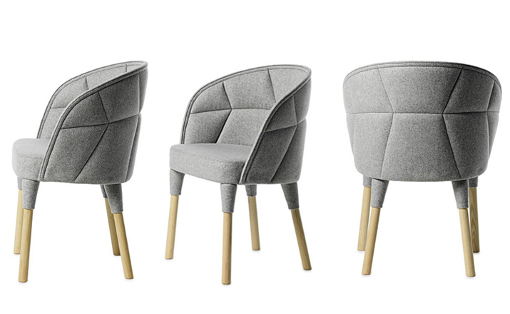 “Emily is our Emma easy chair’s little sister. just like siblings, they are similar but still different. The family likeness can be seen in the needlework: they are both upholstered, but differently pat- terned. The needlework is a function which also creates a powerful idiom. The special technique employed is based on a classical craft, while at the same time occupying the leading edge of technology. Emily is a comfortable chair, equally successful round the dining table and at a conference table.”