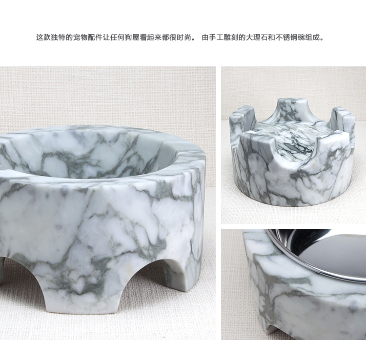 凯利喜欢将日常用品提升为艺术品,这款独特的宠物配件让任何狗屋看起来都很时尚。 由手工雕刻的大理石和不锈钢碗组成,是家庭的一个周到和充满活力的补充。