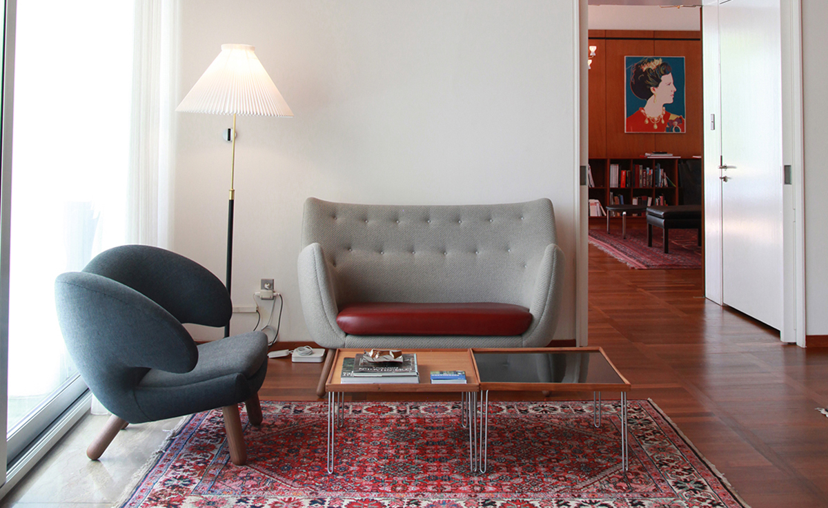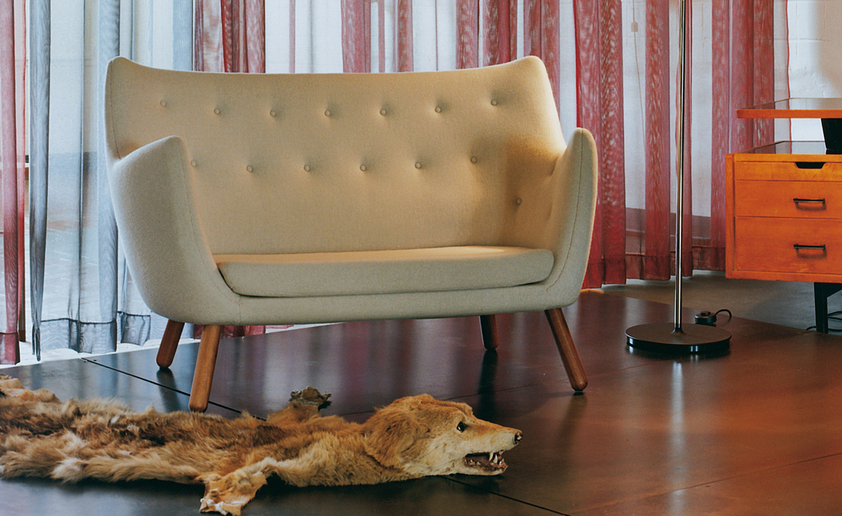 诗人沙发(1941)设计于位于夏洛滕隆哥本哈根北部的农村地区。设计师Finn juhl作为一个真正的享乐主义者,诗人沙发本来是他自用的。他设计的家具非常舒适,使用的工艺传统并且显示材料的价值。