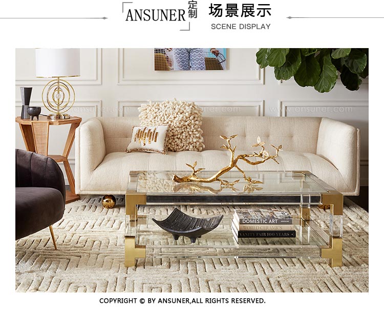 雅克系列是简单与魅力、现代与传统的完美结合。低矮而慵懒,雅克鸡尾酒桌也完美地成为了一个宽大的茶几。巨大的存在,轻便透明。